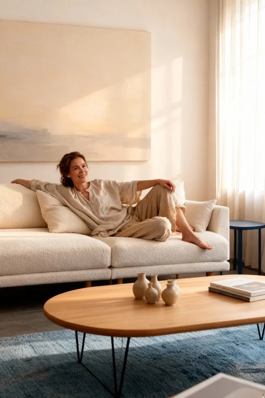 Weiche Linien, tiefe Sitzen, ruhige Formen – alles an Aera lädt dazu ein, sich fallen zu lassen. Für mich bedeutet gutes Design, Raum für Gelassenheit zu schaffen. Aera verbindet diese Ruhe mit einer modularen Leichtigkeit – ein Sofa, das sich deinem Leben anpasst und dich gleichzeitig entschleunigt.