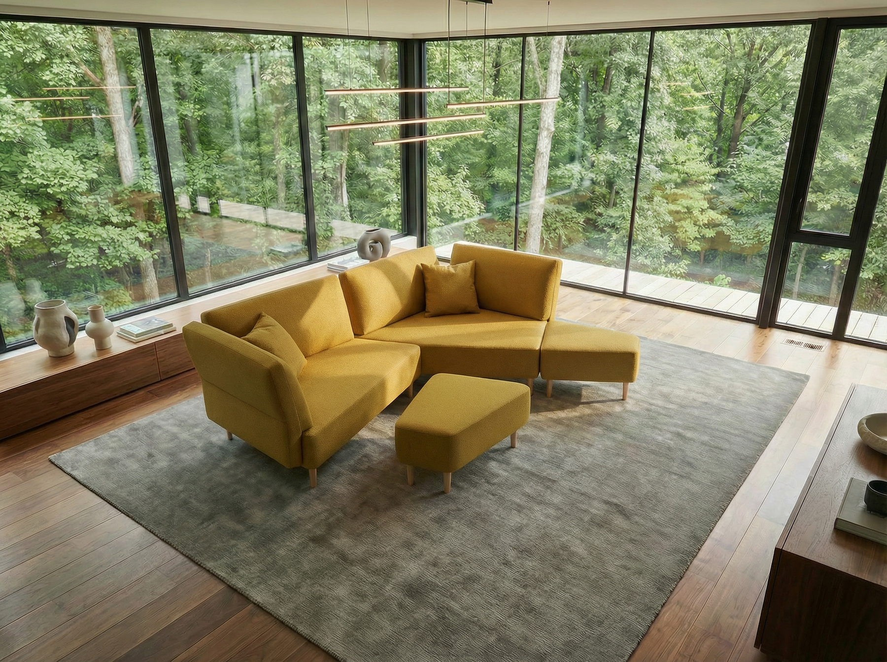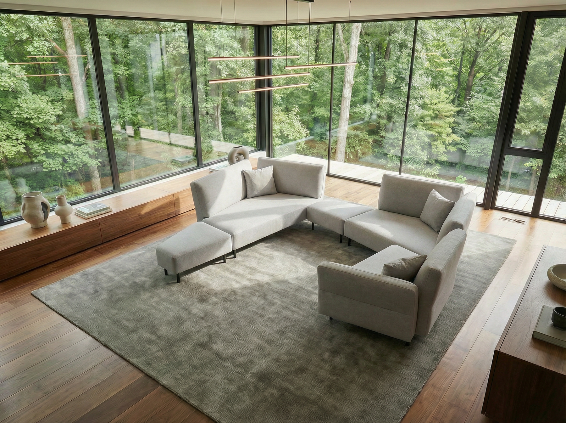 Die Module lassen sich frei kombinieren und neu anordnen – für ein Wohnzimmer, das sich verändern darf.