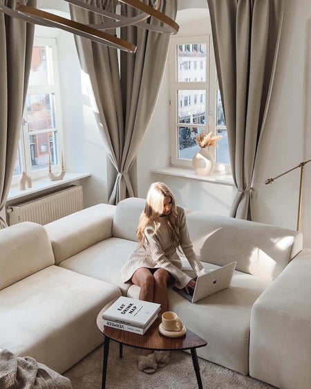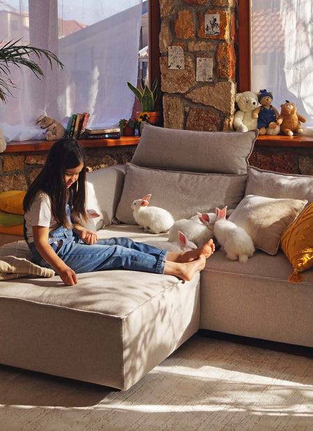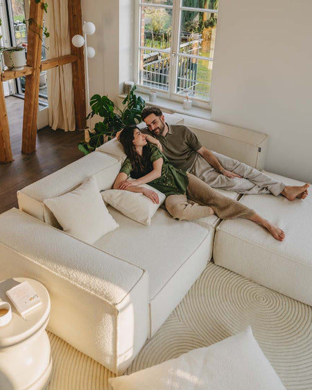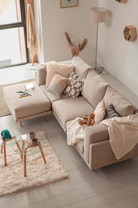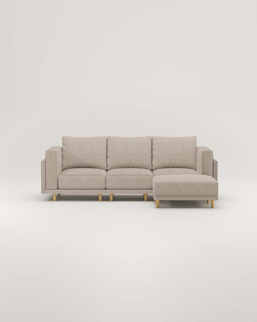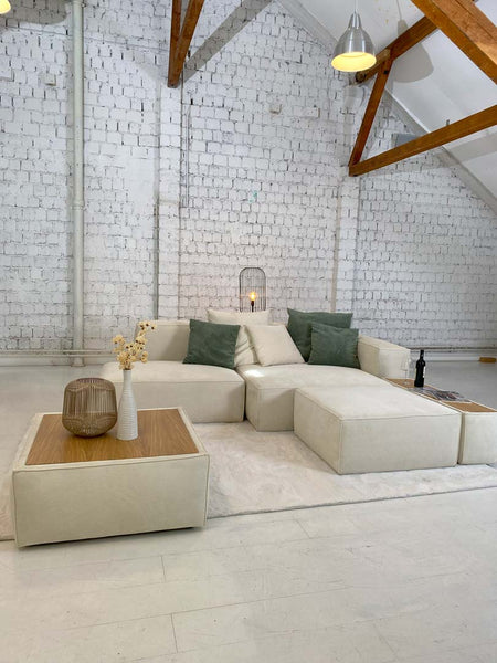 Hier siehst du eine frei konfigurierte Ausführung, basierend auf unserem Harvey Ecksofa 4-Sitzer in Cord Nata.