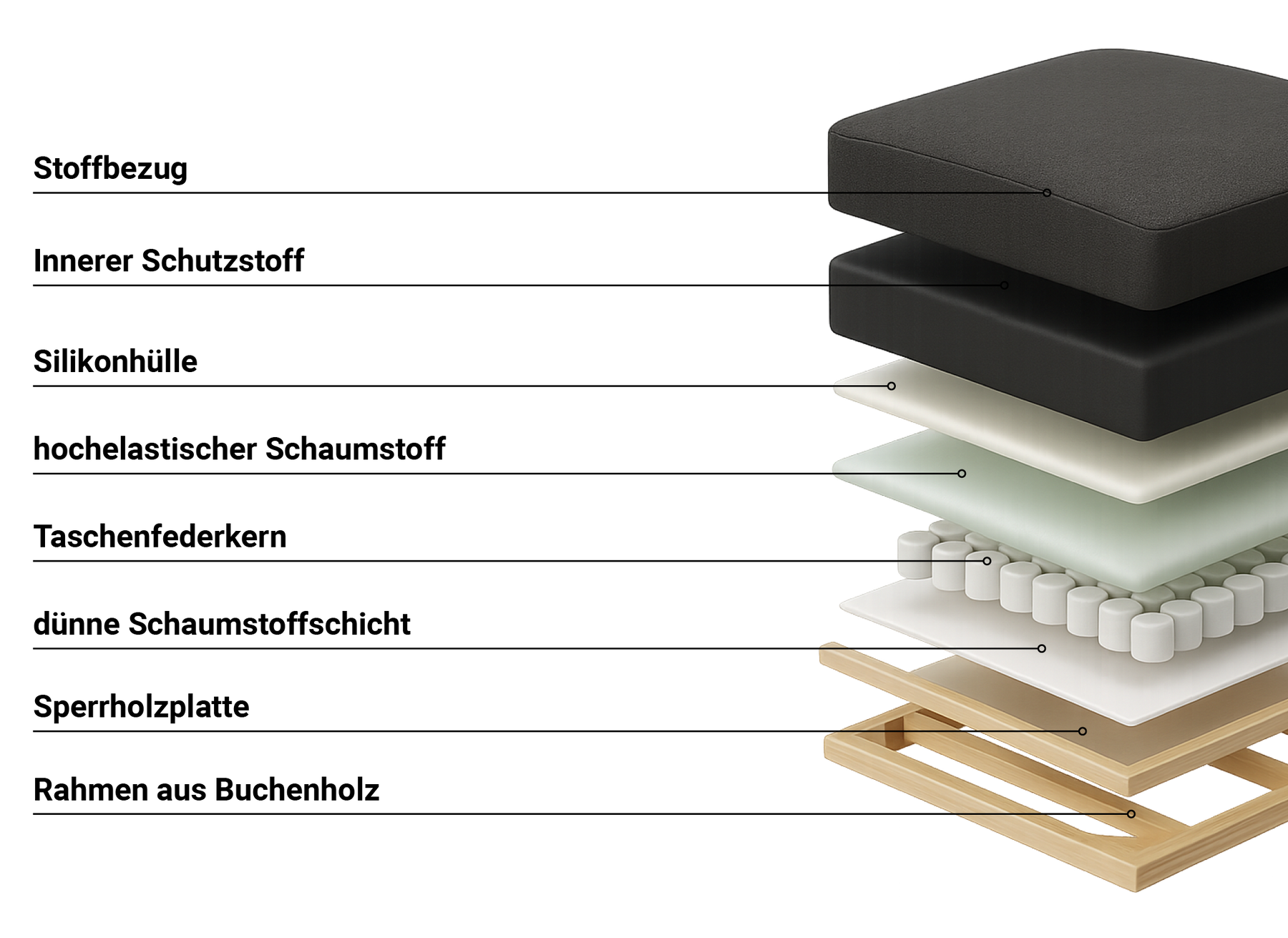 Basta con retirar la cubierta del elemento correspondiente y meterla en la lavadora. Y ya está, ¡la funda queda como nueva! Si lo desea, también puede encargar nuevas fundas en otros colores o tejidos.