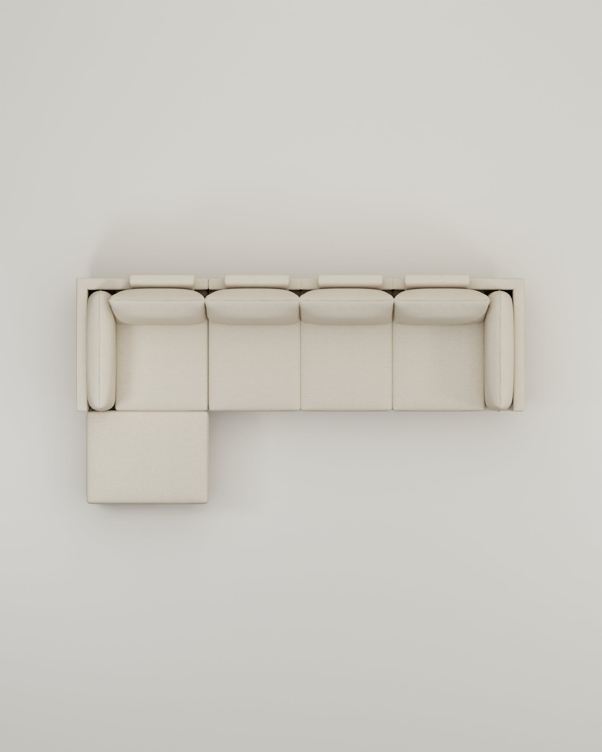 El sofá es modular. Esto significa que puedes colocar y reorganizar todas las piezas a tu antojo y crear un paisaje de bienestar completamente nuevo. Tanto si se muda como si reforma, ¡su sofá no pone límites!