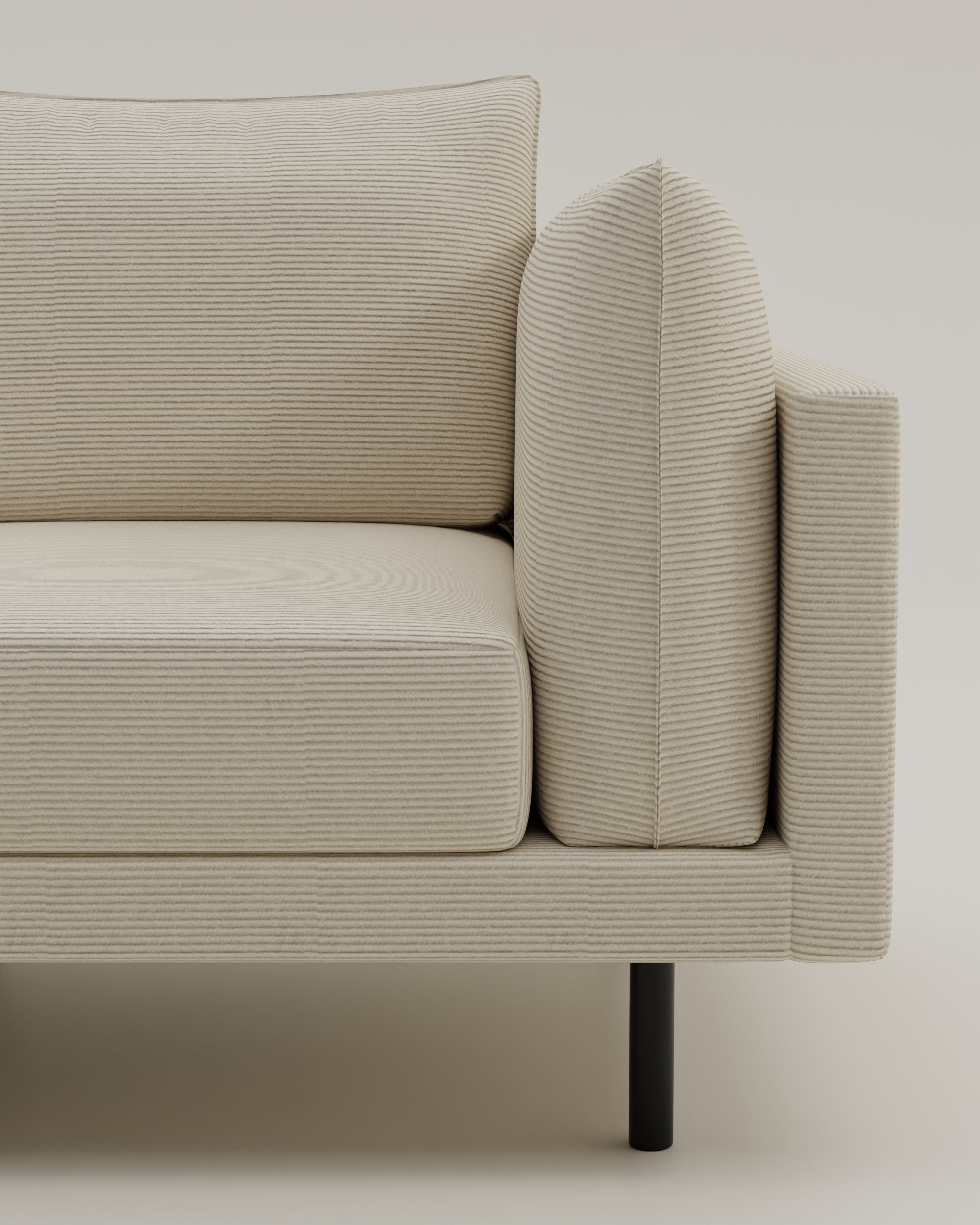 El funcionamiento interno de Donna está fabricado con materiales sostenibles y de alta calidad. Las distintas capas y la capa protectora de tejido hacen que el sofá sea ideal para alérgicos.