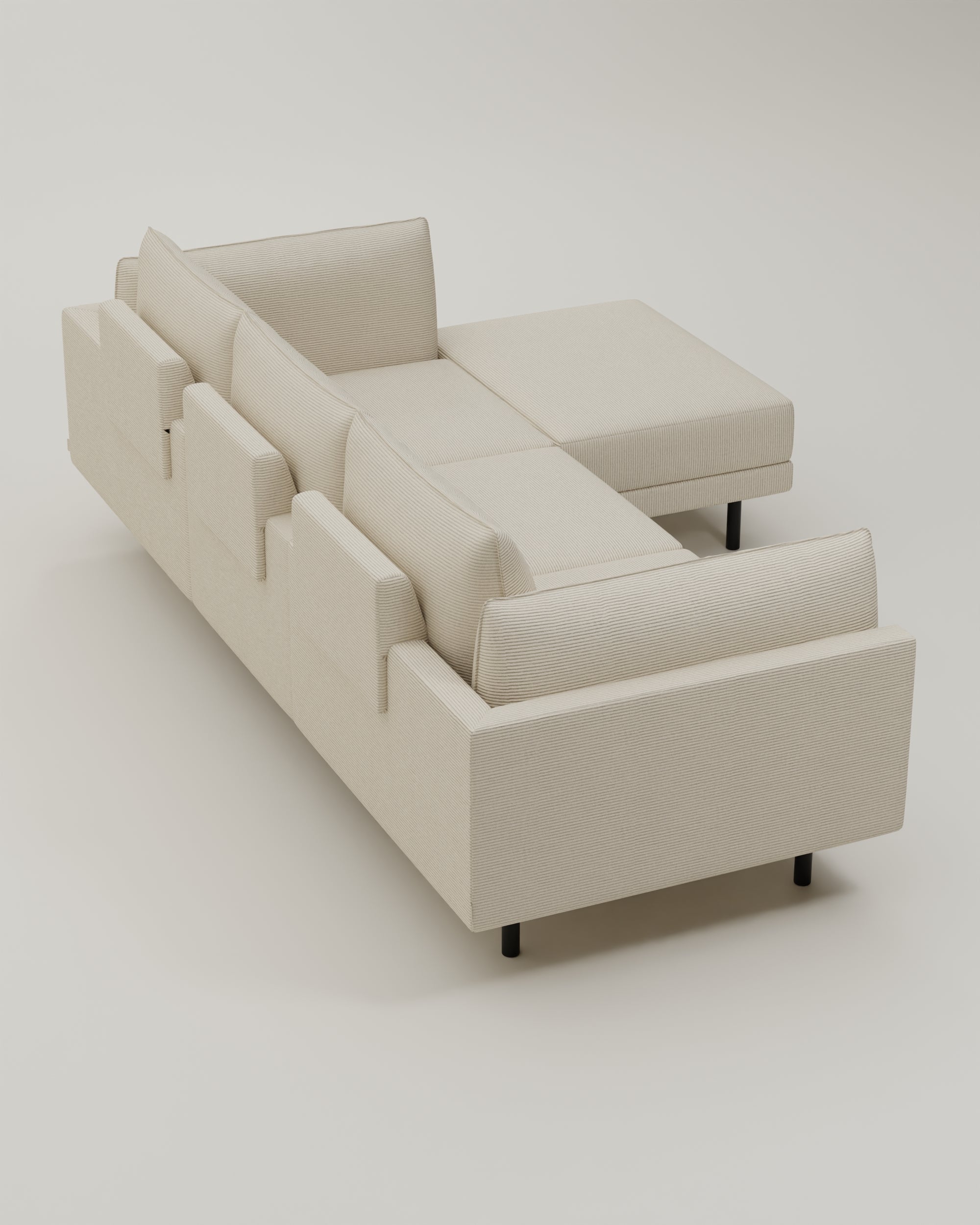 Das Sofa ist modular. Du kannst also alle Teile beliebig anordnen, umstellen und dir eine komplett neue Wohlfühllandschaft bauen. Egal ob Umzug oder Umbau, dein Sofa setzt dir keine Grenzen!