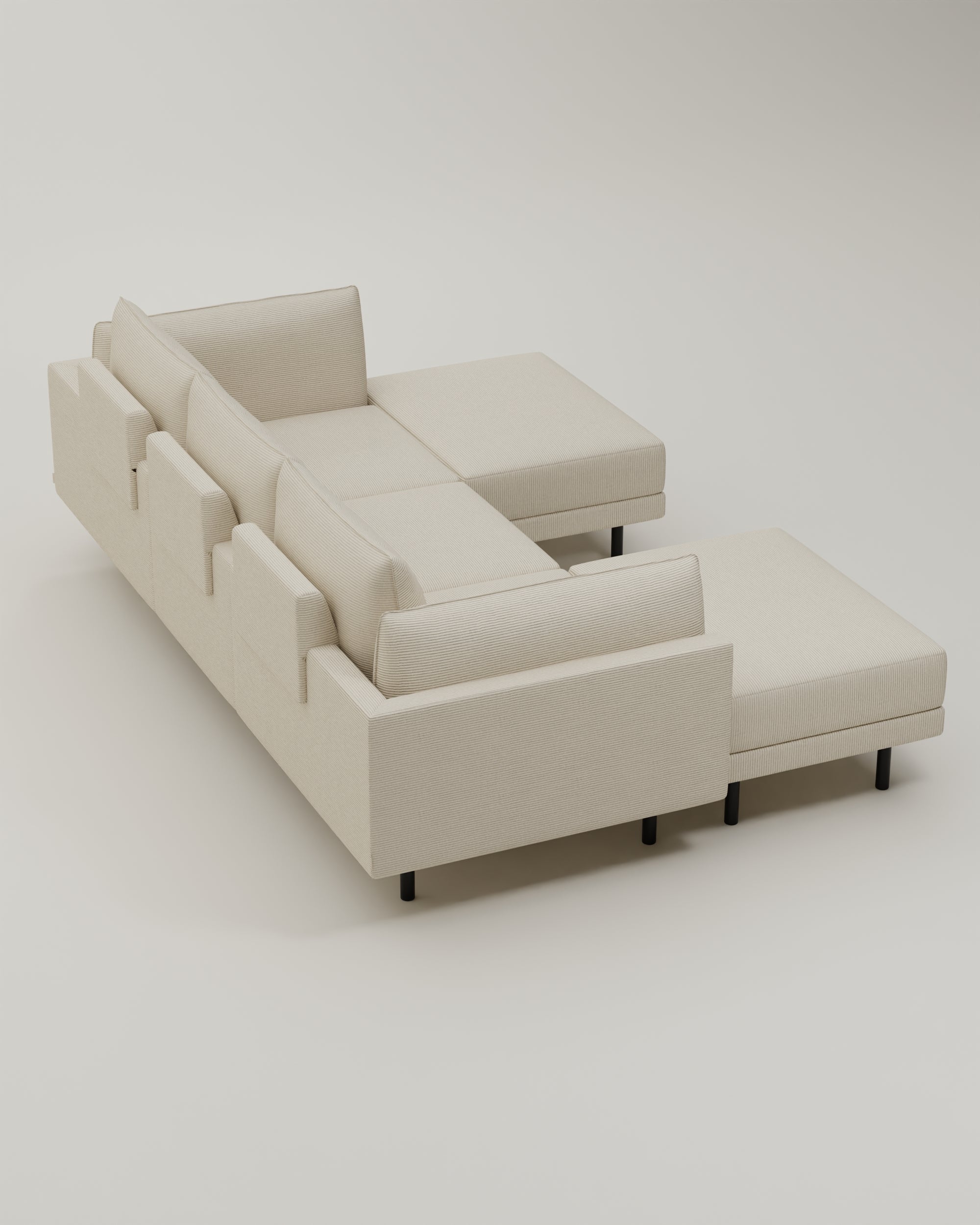 El sofá es modular. Esto significa que puedes colocar y reorganizar todas las piezas a tu antojo y crear un paisaje de bienestar completamente nuevo. Tanto si se muda como si reforma, ¡su sofá no pone límites!
